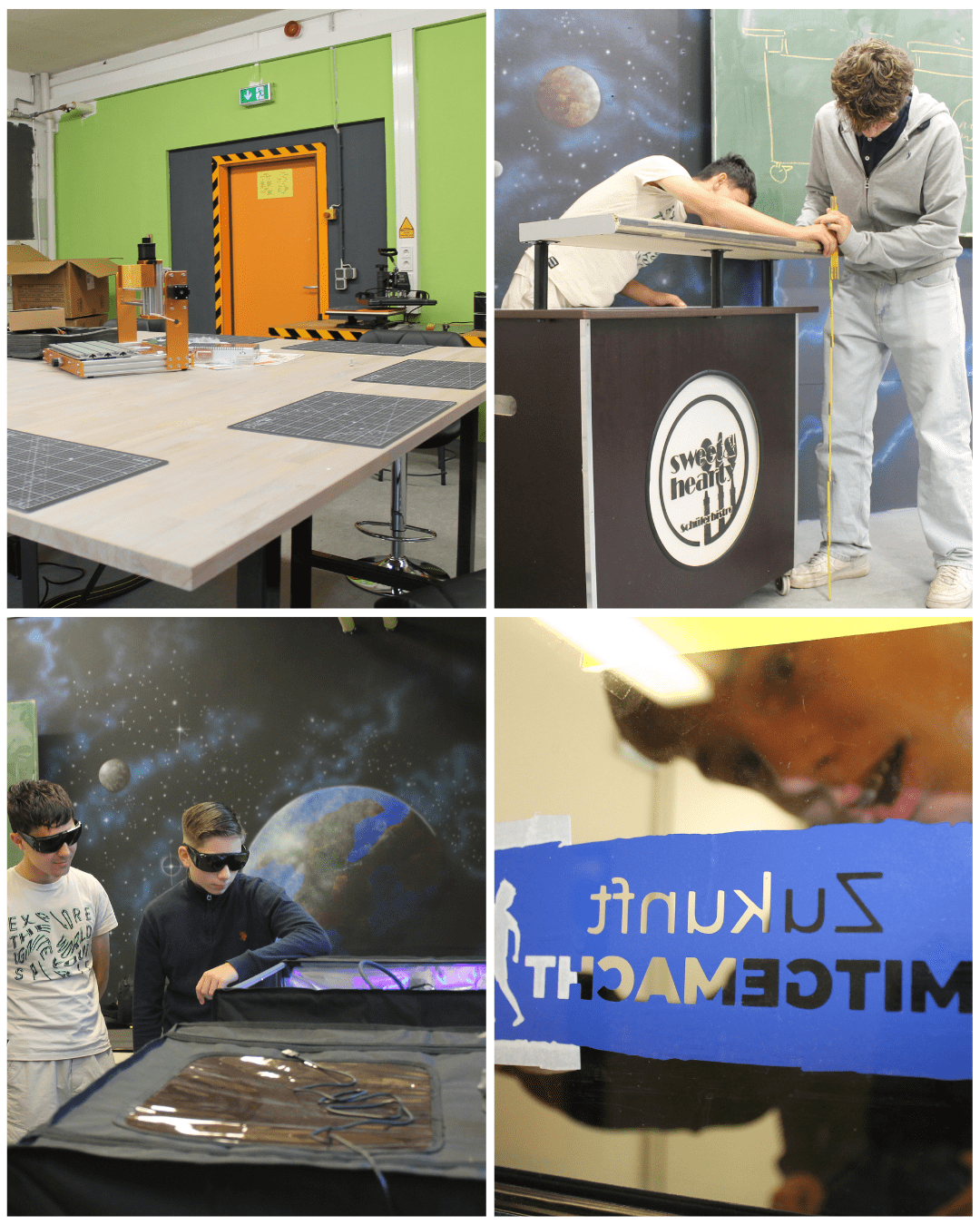 In Maker Spaces können Jugendliche experimentell und kreativ arbeiten. Die Schmellwitzer Oberschule in Cottbus ist nun Teil dieses Netzwerks. Schülerinnen und Schüler der Schmellwitzer Oberschule haben jetzt die Möglichkeit, sich schulintern mit handwerklichen Prozessen und modernen Bearbeitungsmethoden von Werkstoffen auseinanderzusetzen. Dazu wurden moderne Arbeitsgeräte wie Lasergravur-Maschinen, Plotter, 3D-Drucker, eine CNC-Fräse und weitere Geräte angeschafft. Ziel ist es, einen Ort zu schaffen, an dem Prozesse aktiv von den Jugendlichen mitgestaltet werden können.
